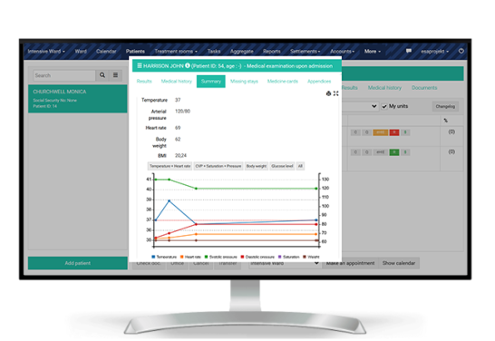 A support module for healthcare professionals during patient visits. During the visit, the data is collected in the online mode. The module is fully integrated into the hospital’s HIS system, allowing data exchange and synchronization within hospital WiFi access points.