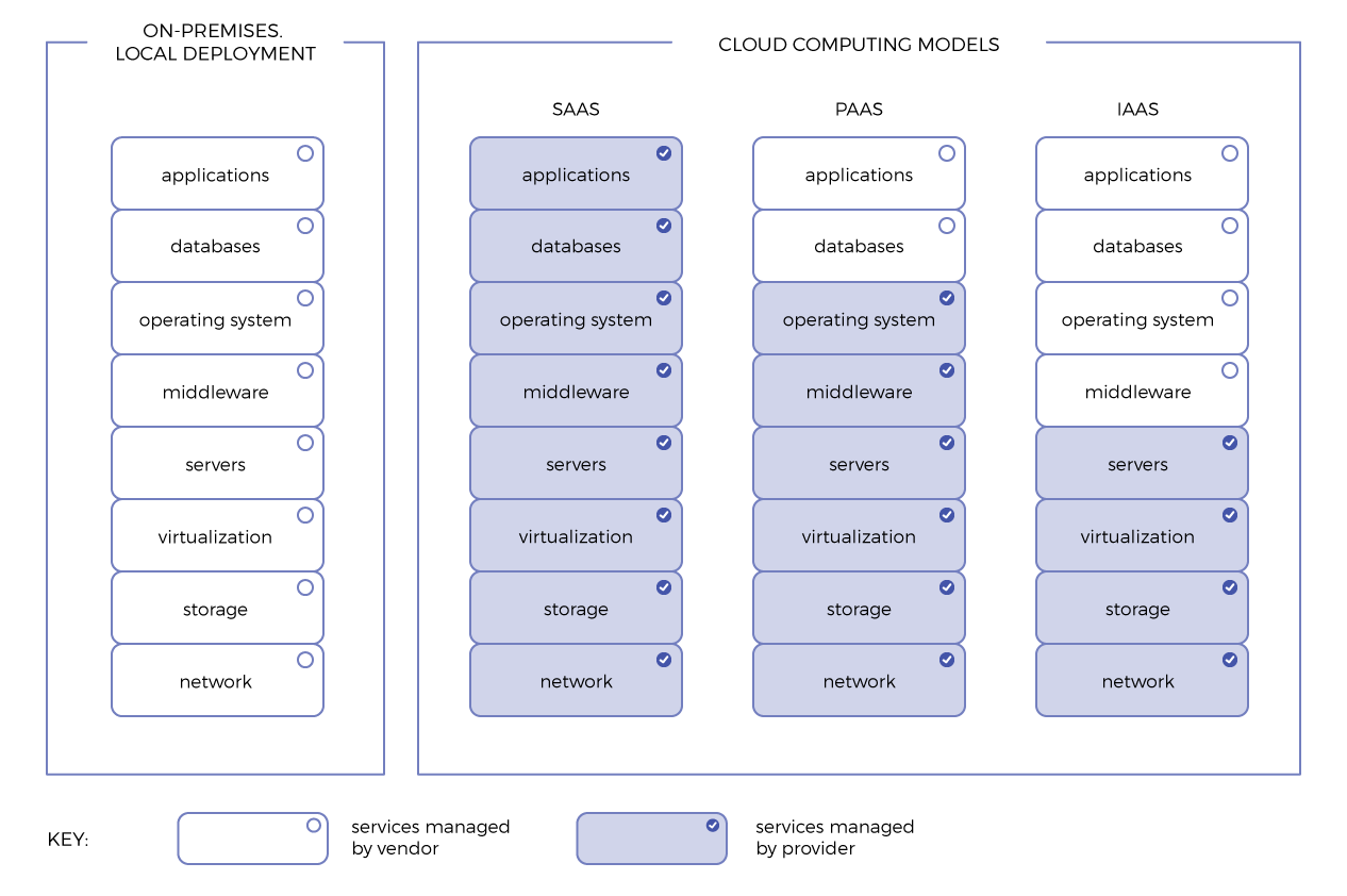 Unlike SaaS and PaaS, in infrastructures as a service the customer handles management for applications, operating systems, and middleware. The infrastructure provider is responsible only for hard drives, servers, network maintenance, and storage.