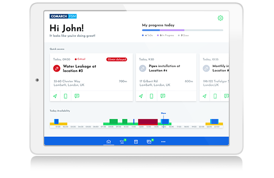 Pair Comarch IoT sensors with Comarch FSM for facility management and monitor buildings in real time. Implement sensors for predictive maintenance and condition monitoring uses, which provide data on, for example, liquid level, vibrations, temperature, power usage, and other parameters. Whenever anomalies occur, a maintenance worker will receive a new alert and will be able to remedy the situation before any breakdown takes place.