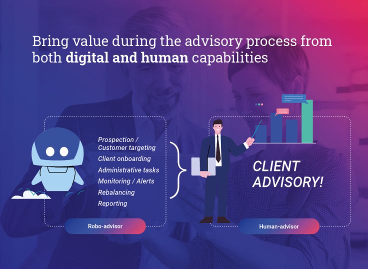 When we take a look at the customer side, trust and confidence in digital tools can seem as a big challenge. Indeed, customers can be hesitant to rely on digital tools and algorithms to manage their finances. For their customers to trust their digital platforms, banks need to provide financial advice through the usual banking app, which has already generated some trust. This challenge comes also with the fact that WM companies must also train their customers on how to use their digital platform most efficiently. And finally, when the customer is well trained and trusts the digital way of interacting, they may require access to support and advice outside of digital platforms, especially for complex financial needs. By addressing and overcoming these challenges together, banks and customers will both benefit from the implementation and adoption of hybrid-advisory models.