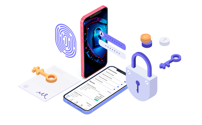 • Mobile banking security with biometric authentication, access to accounts using fingerprints or face ID