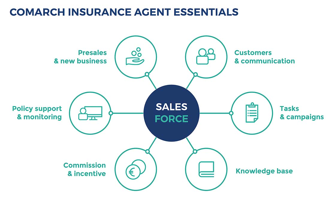 Sales Service Portal building upon the concept of a comprehensive front-end for insurance agents – Comarch Insurance Agent Essentials (currently part of Comarch Digital Insurance) along with support for the Contact Center