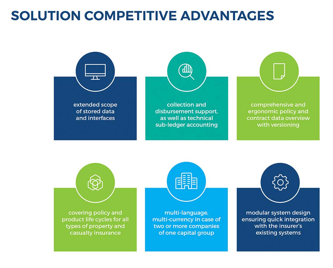 System dedicated to insurance companies providing property insurance and other types of personal insurance. The solution enables consistent and flexible management of all areas of an insurance company's operations. It is designed for front-office employees who contact customers directly (during offer presentation, policy processing, claims handling and debt collection) and for back-office departments such as finance, accounting, actuarial and reinsurance.