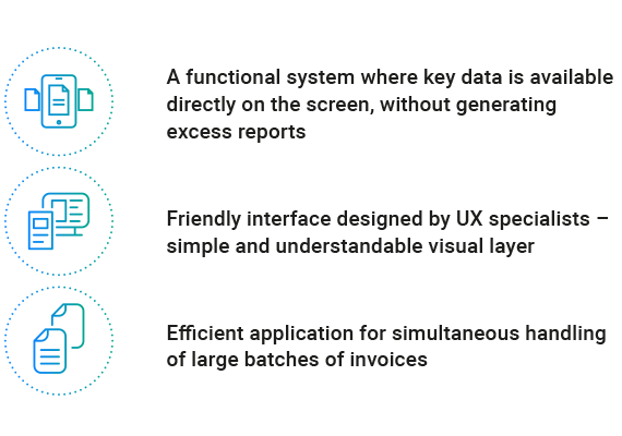 The goal of BNP Paribas Faktoring was to create a friendly user desktop, which would be suitable for easy use (by navigating from the general to the detailed) and gaining knowledge about the transactions carried out.