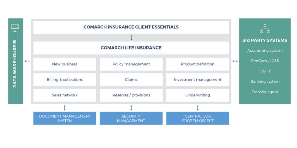 Apart from the core functionality of the Comarch Life Insurance system, we also implemented an integrated document management module, numerous external interfaces and Comarch Insurance Client Essentials – portal dedicated to policyholders’ HR departments and contract managers as well as individual insureds.