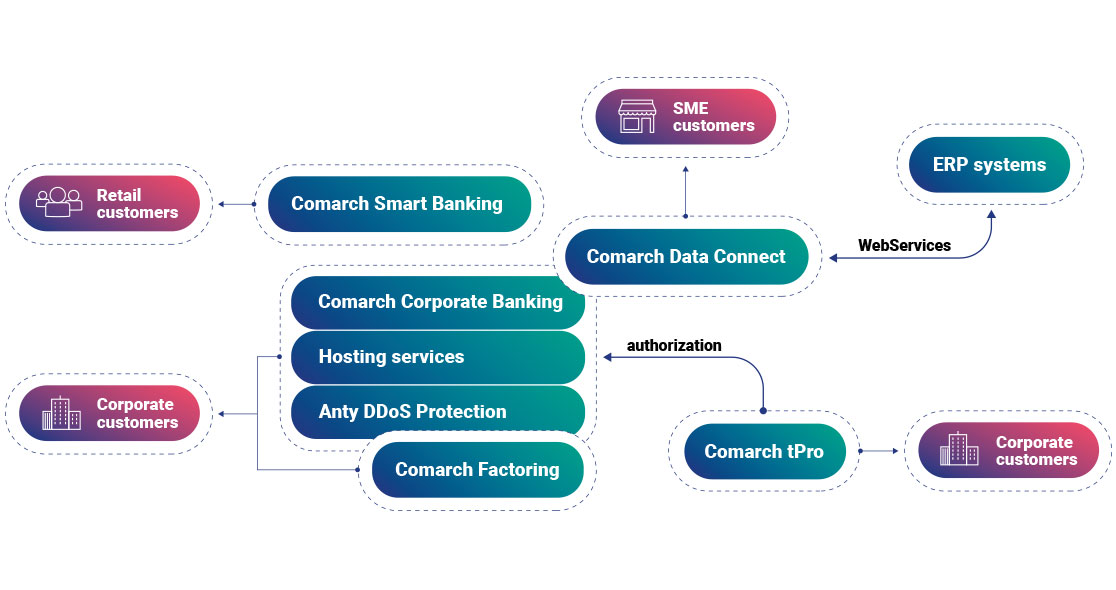 DNB Bank Polska S.A. first started to cooperate with Comarch in 2004. At first it was Corporate Banking solution and hosting services. This resulted in partnership that has flourished for the last 18 years. During that time, Comarch has implemented several different solutions for DNB, that created a whole banking ecosystem.