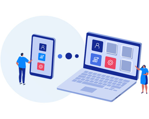 The selected action can be performed in the mobile application and the results will be available at once in the web application.