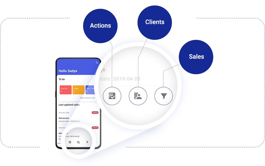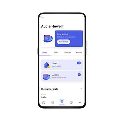 The mobile application allows insurance agent, brokers, and sales managers to quickly contact the client by clicking on contact details. You have the option of adding a new client to the application. The application allows you to filter and view the client that the distributor can see.