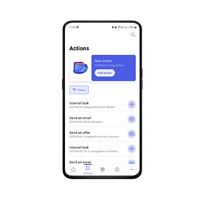 You can quickly enter the list of actions and to-do tasks assigned to users in the mobile application.