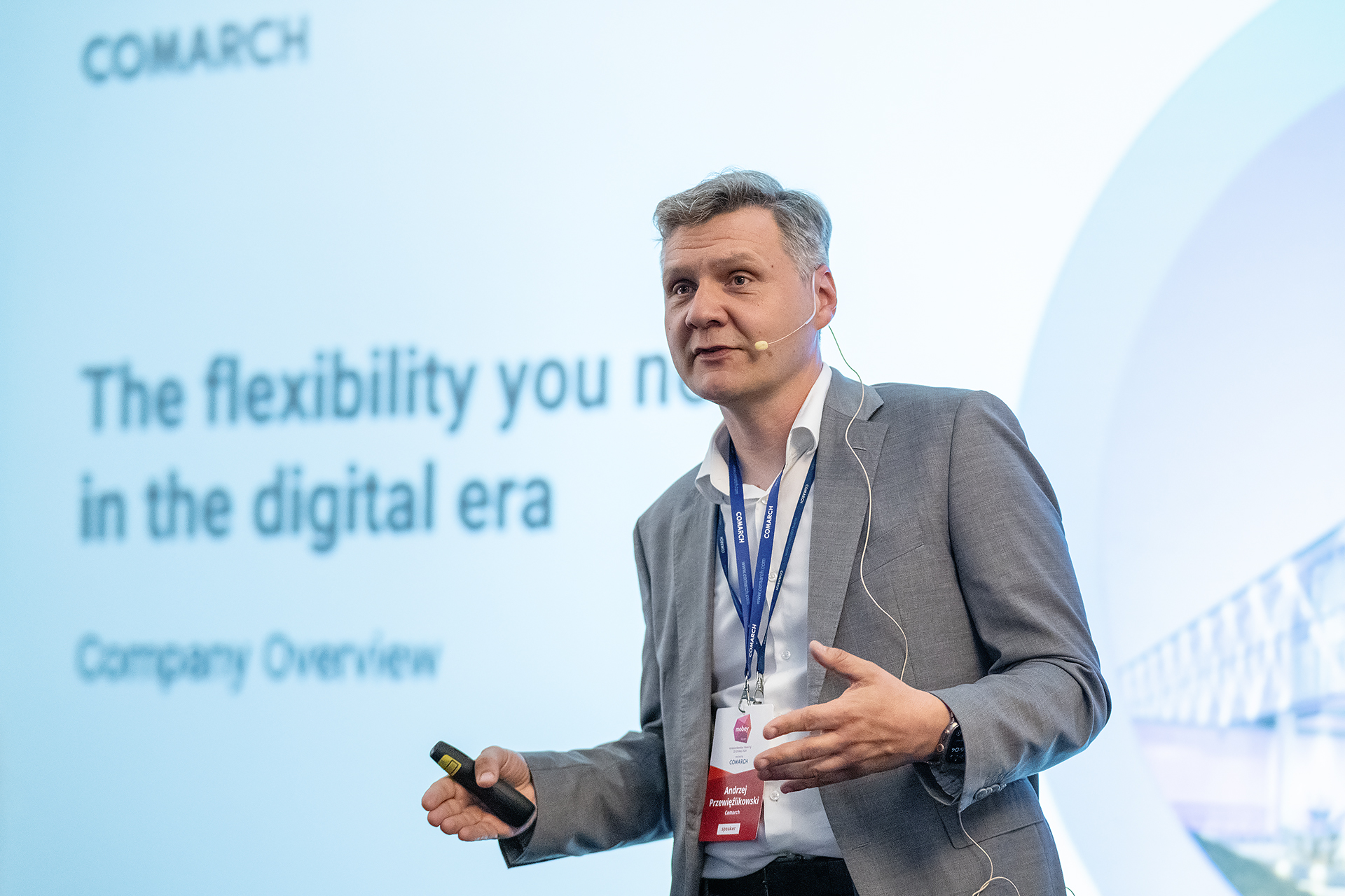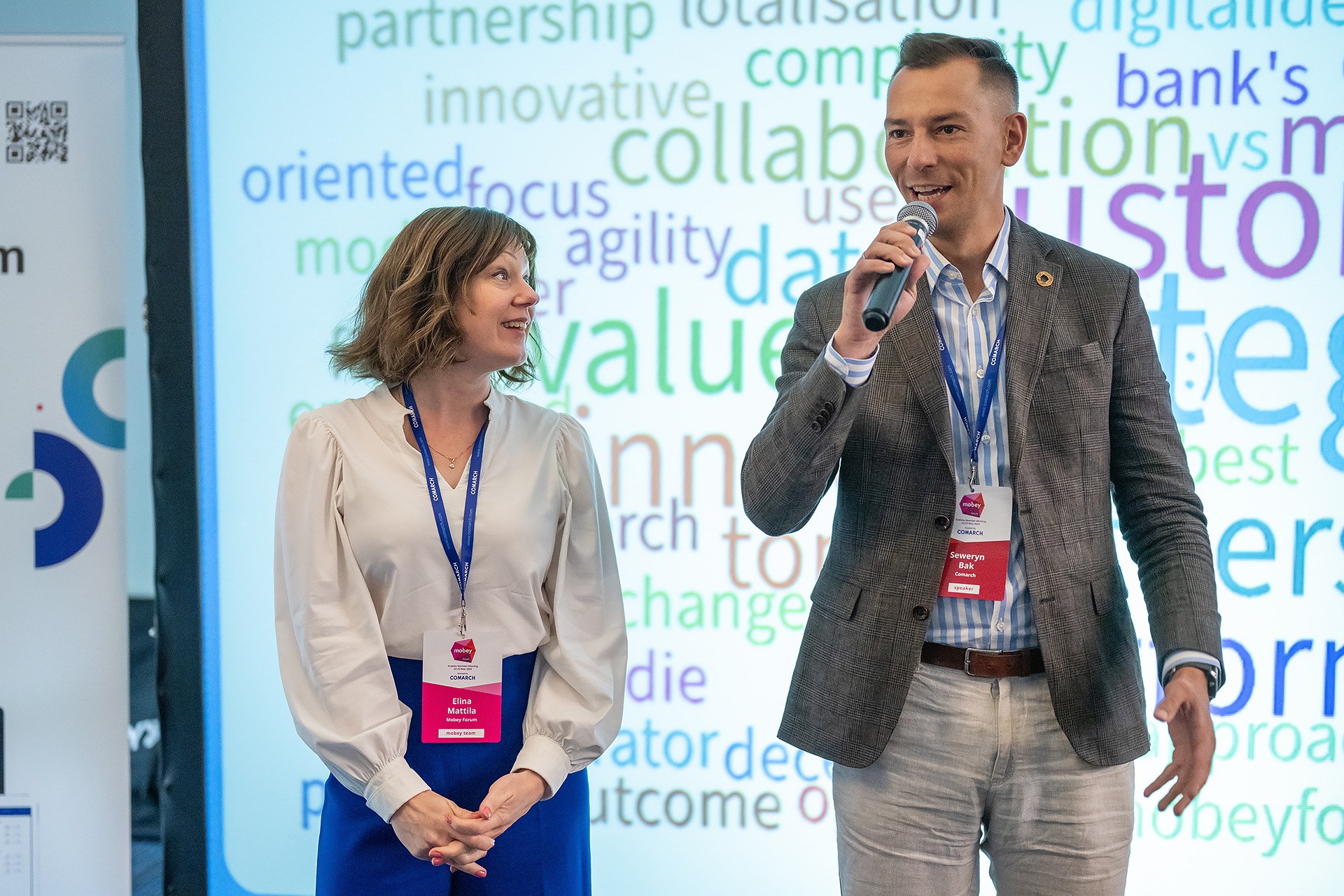 Taru Möller from Nordea opened the main event with welcome words as Vice-Chair of Mobey Forum's Board of Directors, then Comarch’s VP and Director at Financial Services Division, Andrzej Przewięźlikowski had an opening keynote about Comarch Financial Services, technology and trends, CSR, and mentioned how important R&D is to maintain flexibility and competitive advantage in the banking industry.