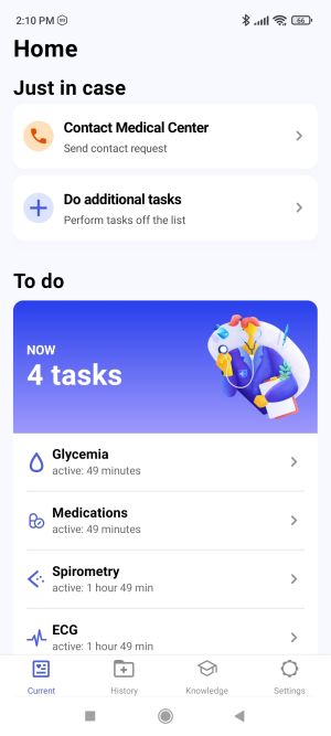 Comarch HomeHealth 2.0 is an application for a tablet or phone with integrated measuring devices that allows remote care of the patient outside the medical facility. It is intended for individual patients suffering from chronic illness or after hospital treatment, and for nursing homes or community nurses. The set of appropriate equipment can be modified according to the patient’s needs, such as for pulmonary patients or patients diagnosed with diabetes.