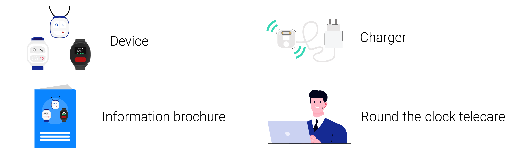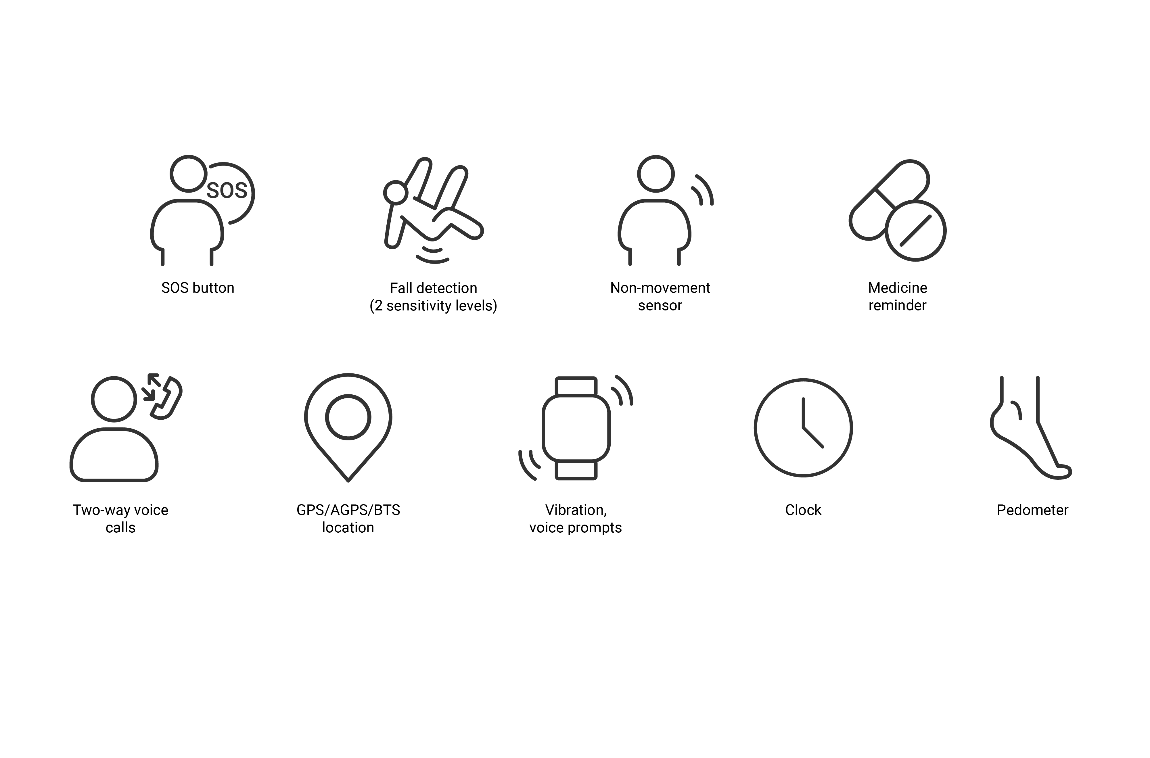 • 2 buttons (including an SOS button marked in red and Braille alphabet)