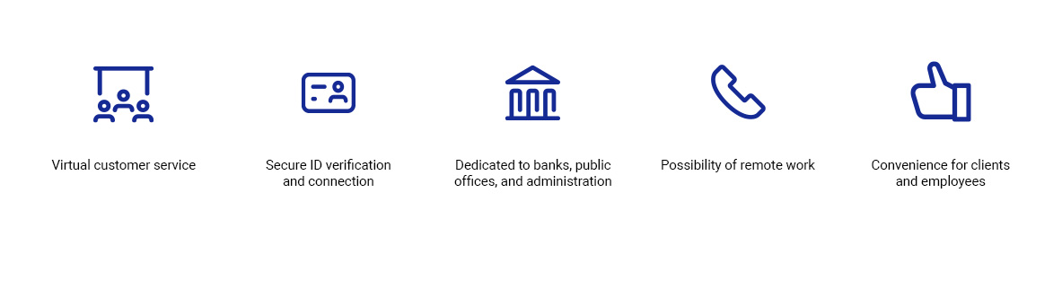 Virtual Customer Support. An intuitive system that allows you to give service to your customers remotely – at bank, at office or at administration unit. With easy registration for e-visits, customers can do a lot of things without leaving their home, solving the problem of heavy traffic and queues. Comarch e-consult provides a secure connection to protect sensitive data, a clear panel of the customer and admin, and identity verification during a conversation.