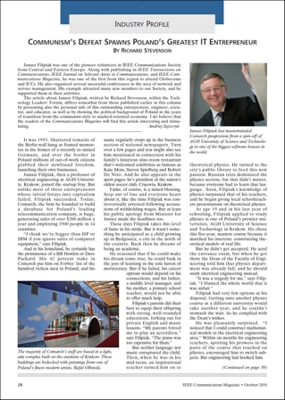Published in the United States by the Institute of Electrical and Electronics Engineers, the IEEE Communications Magazine presents an extensive biography of Professor Janusz Filipiak in its October issue.