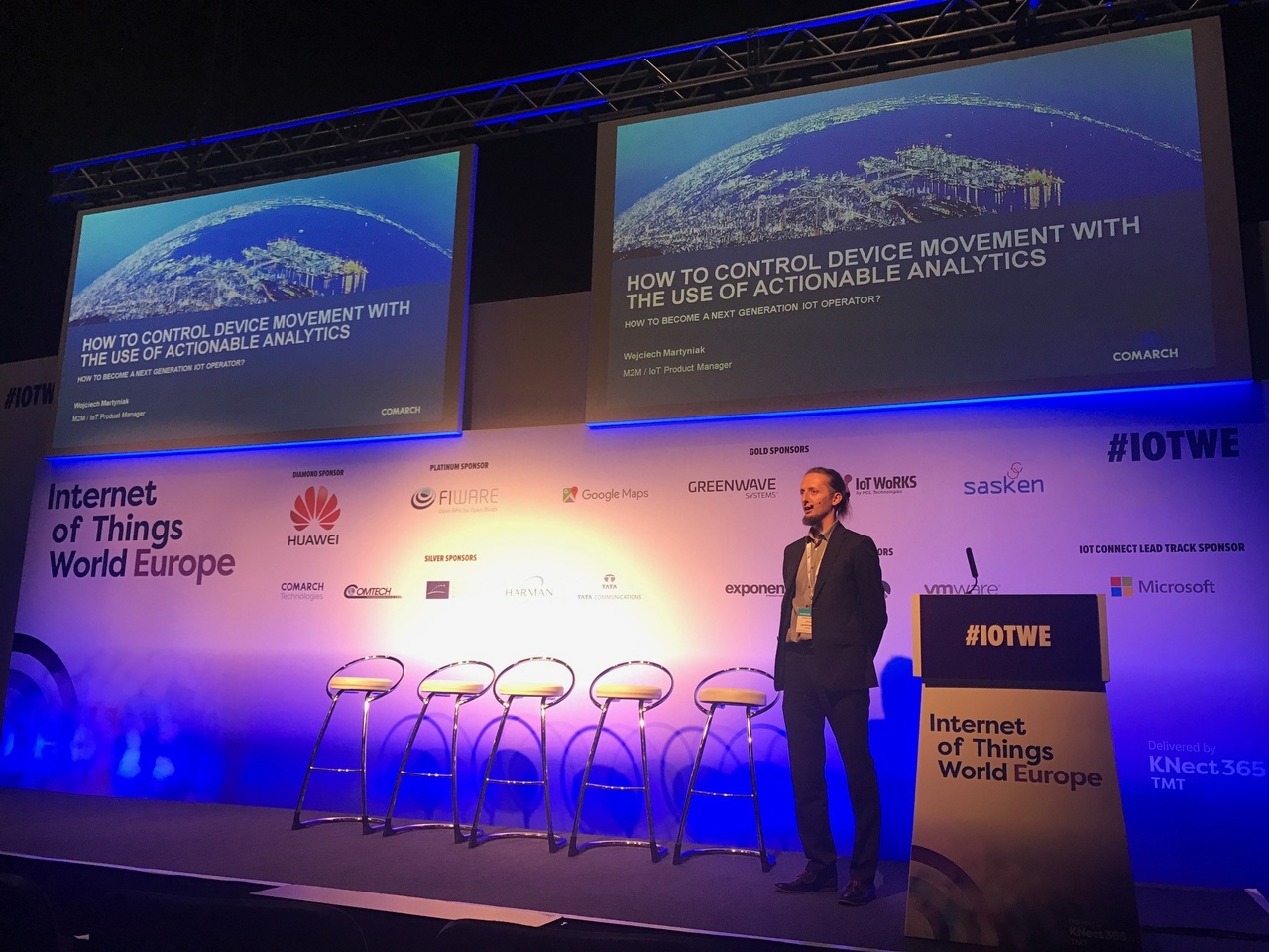 Our third presentation at TechXLR8 came from Comarch’s Wojciech Martyniak, who spoke at IoT World in the at IoT Architecture stream at 14:20 pm on Wednesday 14thJune, and explained how to control device movement using actionable analytics.