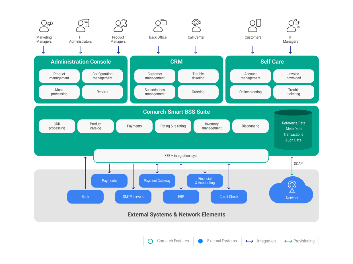 Comarch Smart BSS is a top quality COTS (commercial off the shelf) system for multi-technology and multinetwork providers, built from out of the box products. The system allows easy integration with any kind of third-party systems, while at the same time enabling extensive configuration options. Comarch Smart BSS supports the efficient management of all key processes at Media Broadcast, offering a high degree of flexibility for changes, which makes the solution future proof.