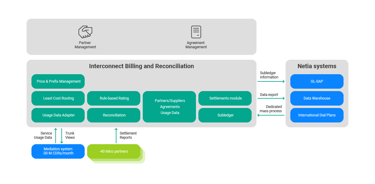 In 2004, Comarch signed an agreement for the delivery of Comarch InterPartner Billing system to Netia SA in Poland. The project goal was to handle Netia’s interconnect agreements and manage the end-to-end processing path: starting from data loading from mediation, rating, billing and reporting with respect to multi dial-plans, integration with GL and external sources of reference data.