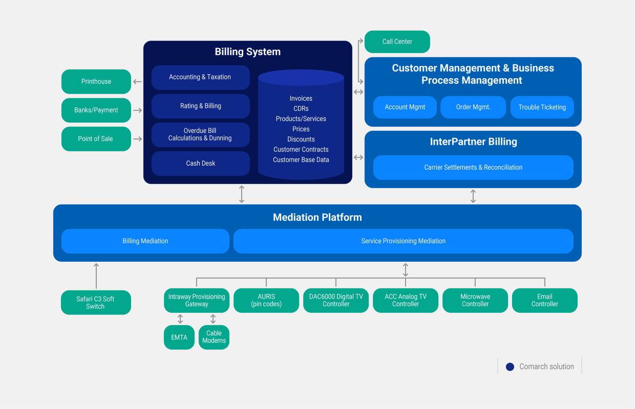 Preceded by an in-depth requirement analysis, the resulting Comarch BSS Suite implementation provided Xtrim with a centralized TV, Internet, and IP telephony billing and customer care system that was still capable of supporting regional product offers for the various geographical markets in which the company operates.