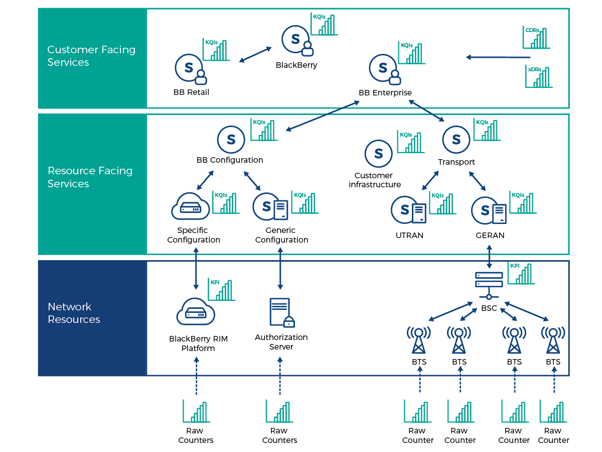 Define service models and use them to monitor interdependencies between your customers, services and network.