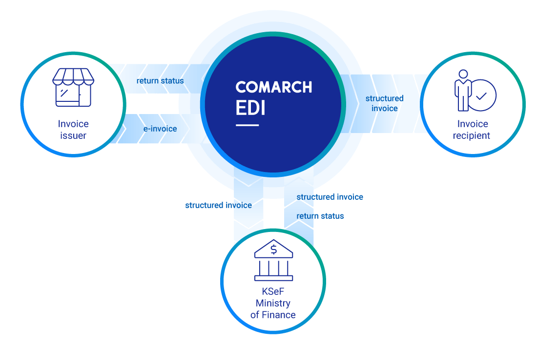 The API of the National System of E-invoices is to enable integration with Comarch EDI (used by thousands of customers in Poland and abroad). This means that all users of our platform will be able to send and receive e-invoices to/from KSeF. Comarch EDI will also ensure full compliance with the latest regulations and transparency of the circulation of all invoices (and their statuses).