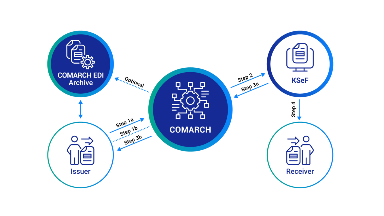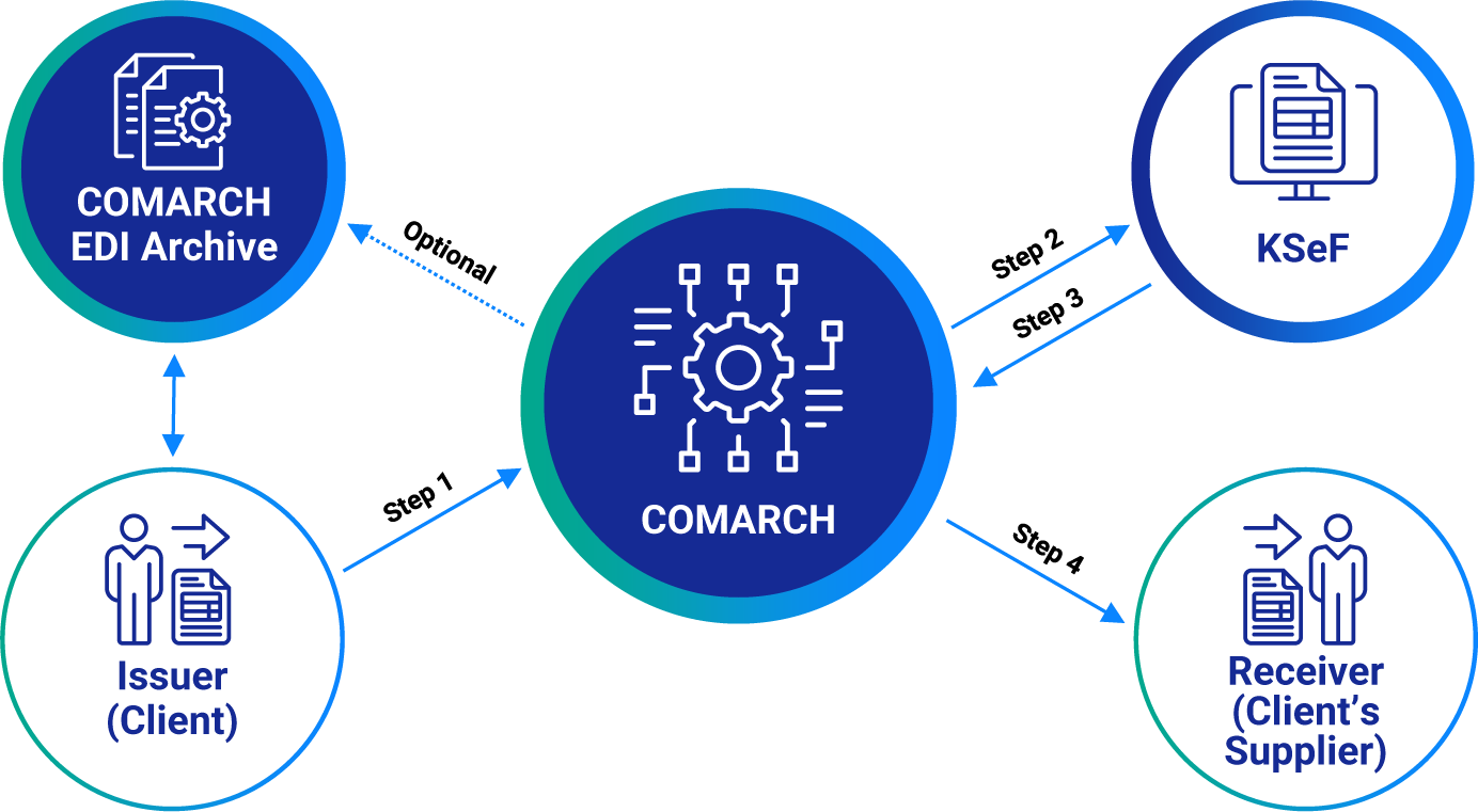 Access to the National System of E-invoices may be obtained by a taxpayer, an authorized person, an authorized entity, or one of the entities referred to in Art. 106c of the Act, as long as they are authorized to issue (or make available) structured invoices. The legislator is to ensure the possibility of issuing a structured invoice via a dedicated platform for micro-enterprises (directly in the system via a web interface). Another option is to prepare invoices in the taxpayers' ERP systems accordingly to the published template. In the case of issuing invoices using an in-house financial and accounting system, the documents should be delivered to KSeF via a defined link, for example, via Comarch EDI to KSeF API.