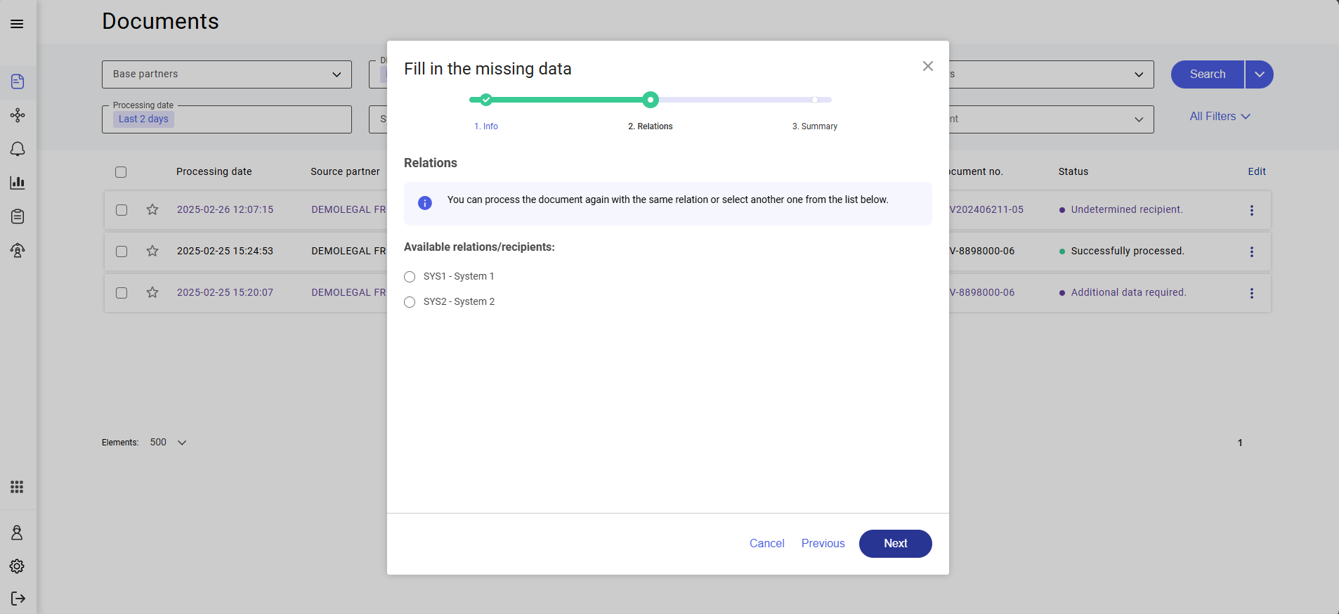 - To prevent invoice rejection, the customer can use the manual routing option to select the internal system to which the invoice should be sent.