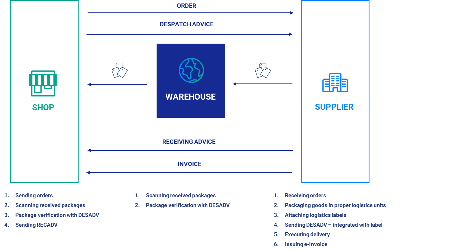 Logistics operations are often complex, with constantly growing needs of customers to be addressed. Therefore, companies have to smartly choose between applications supporting their operations. Some companies have implemented measures that help with scanning logistics labels directly, enabling paperless goods reception with the use of Proof of Delivery applications. Such applications are already widely used by couriers and now companies are adapting them to B2B paperless solutions. This significantly improves the accuracy of documents and other types of data that can be directly trace via app connected to Classic EDI systems. Other companies use mobile applications that allow barcode scanning, which allows to directly issue an invoice to the system (so-called dock system, often used in retail).