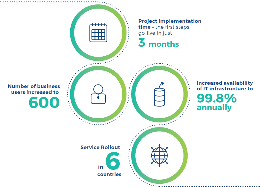 Only three months after the kick-off meeting, in April 2017, the go-live fornew Infrastructure in Dresden Data Center was established. All managed services from the previous Data Center were transferred to the Data Center in Dresden, and, month by month, more services were introduced: ERP System, SharePoint, Exchange and Exchange Archive solution. a multi-layered IT infrastructure was designed to ensure the annual availability of more than 99.8% and was extended up to almost 600 business users.