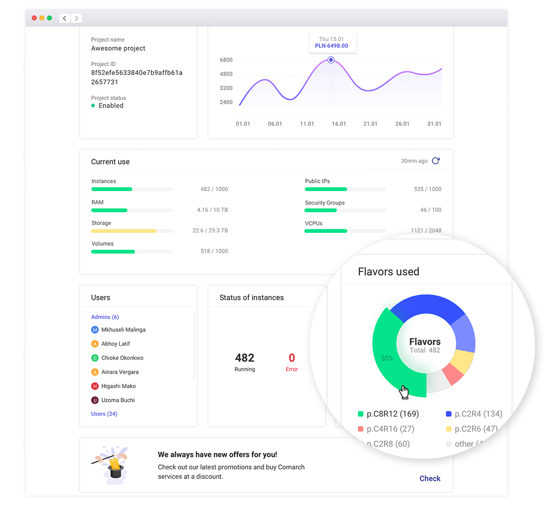 We offer an entire portfolio of Comarch Cloud products and services that accelerate digital transformation, optimize costs, and drive better business results. With 6 cloud regions, pay-as-you-go models, and unmatched cloud expertise – it’s easy to see why the world’s largest brands put their high-end applications in Comarch Cloud.
