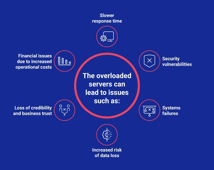 The overloaded servers can lead to issues such as: