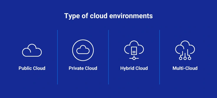 Organizations can choose from several options when it comes to the type of cloud environments, each offering specific advantages: