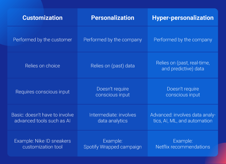 Although customization, personalization, and hyper-personalization might seem similar at surface level, they don’t mean the same thing.